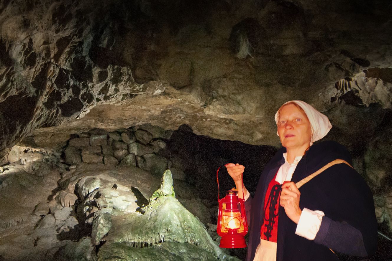 Mitten im Wald beginnen die stimmungsvollen Laternenreisen durch den Iberg. „Begleitet von unserer Bad Grundner Kiepenfrau und unserem Harzer Bergmann geht es, die Laternen in der Hand, in die Tiefe des Berges“, beschreibt die Leiterin des HEZ, Dr. Brigitte Moritz, den Beginn dieser schön inszenierten Kostümführung.